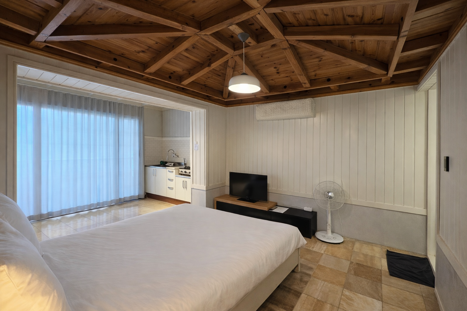 *침실- 퀸사이즈 침대, 호텔 화이트침구류 ,TV, WIFI, 선풍기