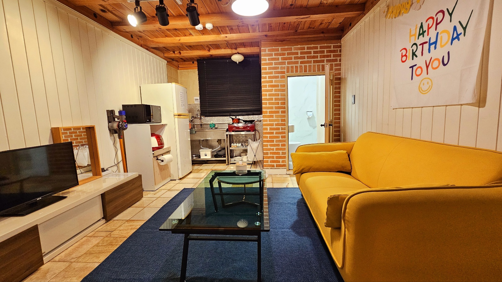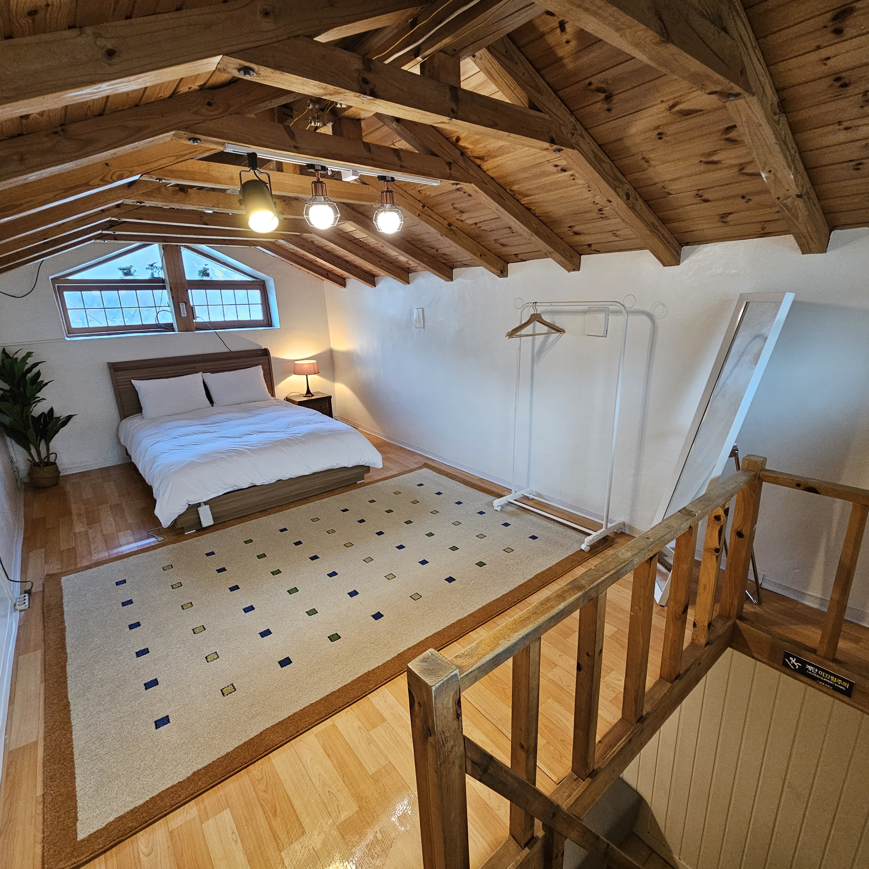 복층방1, 거실1, 화장실1, TV, 싱크대, 냉장고, 전기밥솥, 전자렌지, 쇼파, 행거, 블루투스 스피커(마이크), 외 그릇