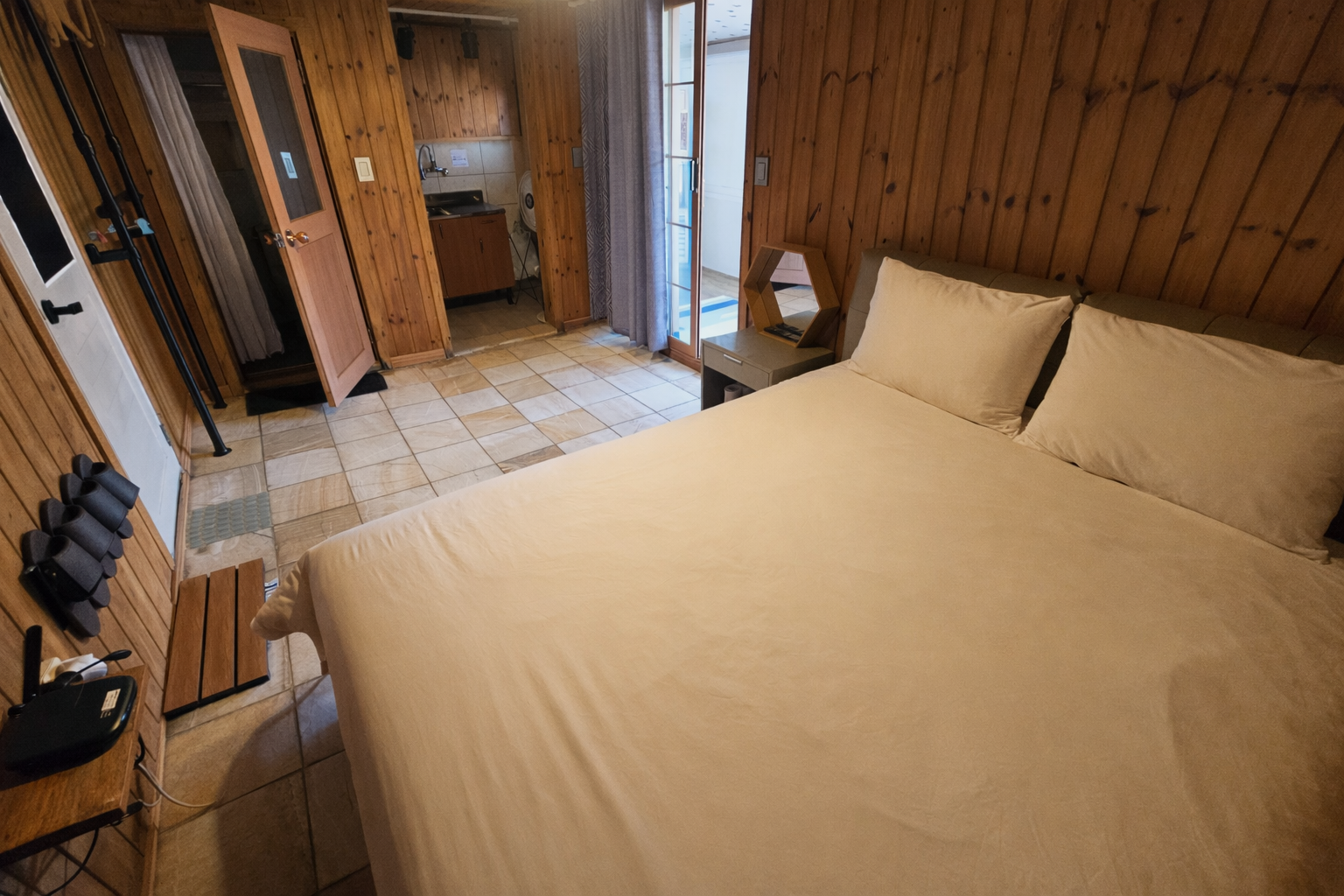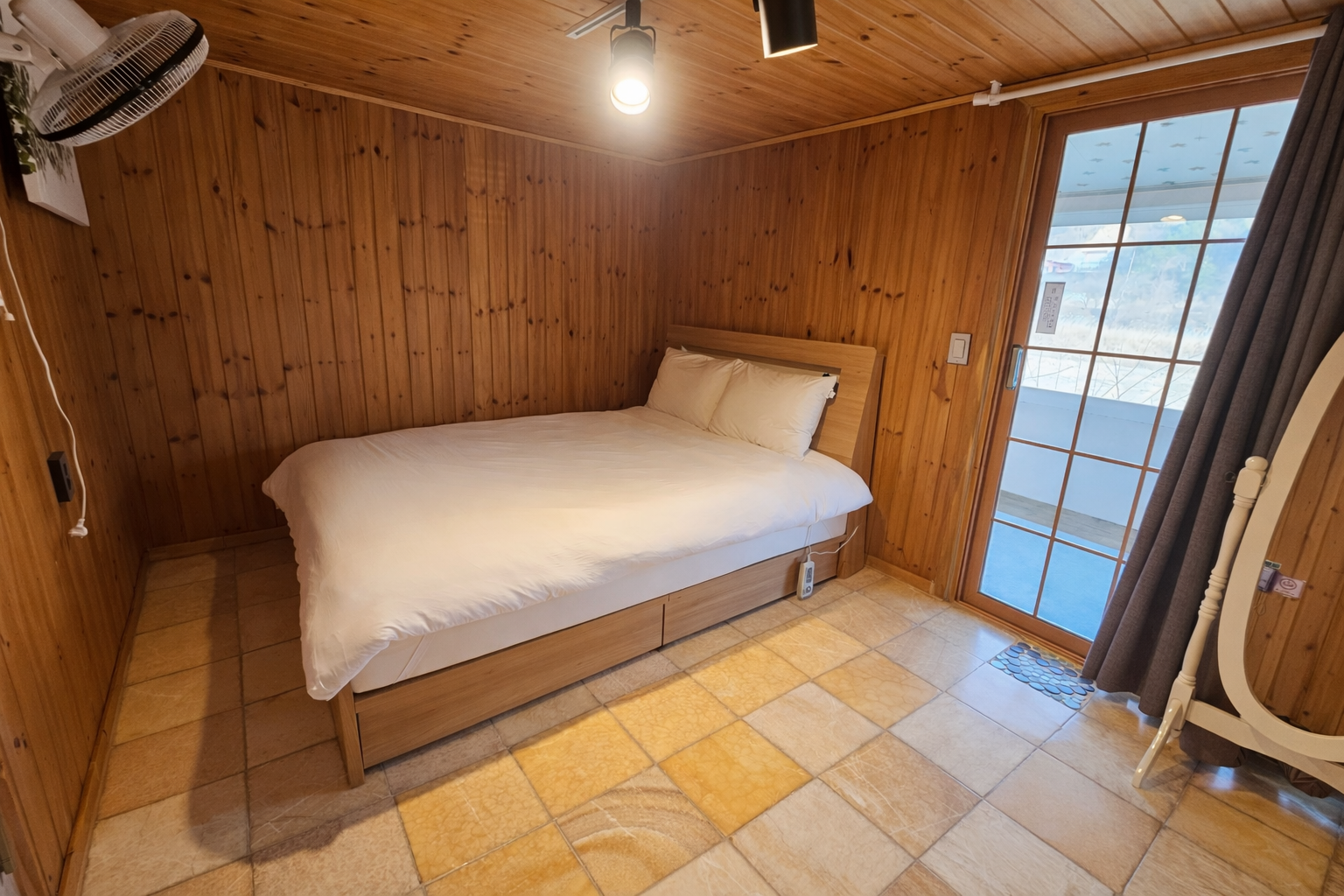 *침실- 퀸사이즈 침대, 호텔 화이트침구류 ,TV, WIFI, 선풍기