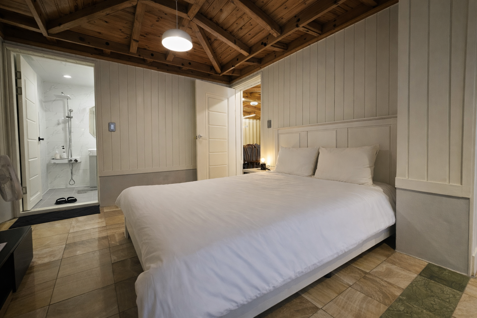 *침실- 퀸사이즈 침대, 호텔 화이트침구류 ,TV, WIFI, 선풍기